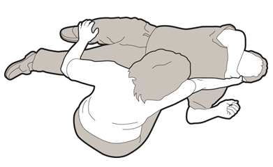- Draai het slachtoffer naar je toe door zijn gebogen knie naar je toe te bewegen, terwijl je de hand van het slachtoffer tegen de wang houdt